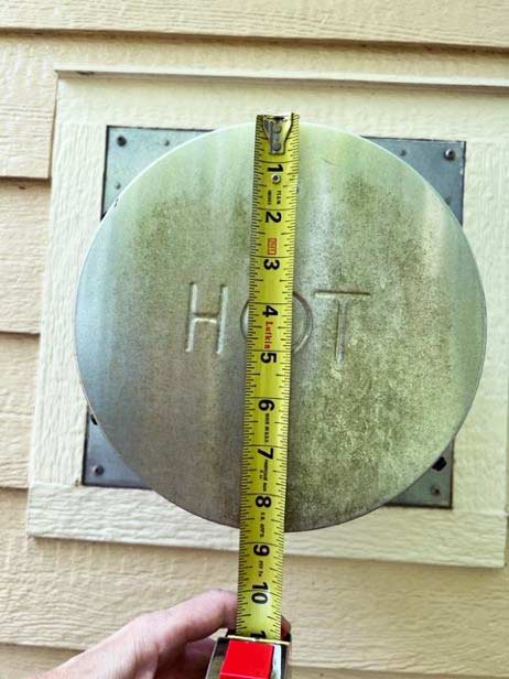 Fits a Direct Vent Round Horizontal Termination Cap. The cover is 10" in diameter and 10" deep. Three strong neodymium magnets hold the cap cover securely. The front of the cover is lined with a ½" Energy Star approved polystyrene foam to protect the shield from wear and tear and adds insulation. Be sure to measure your cap before ordering! Please check the face cover with a magnet to be sure our cover will attach. If you have a different diameter and depth or a magnet does not adhere to your face plate, you can request a custom round cover.